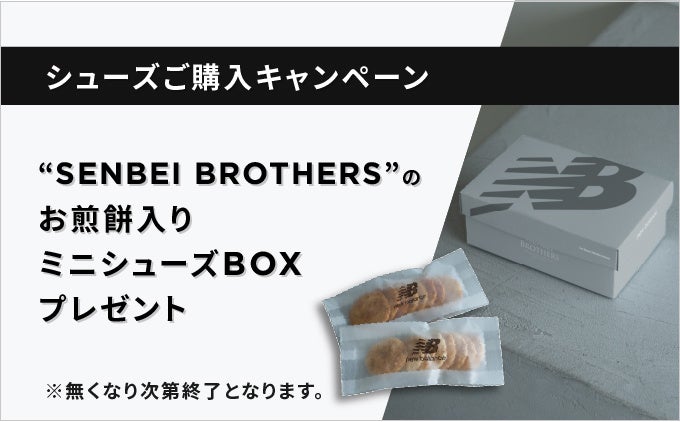 シューズ1点以上ご購入で、“SENBEI BROTHERS(センベイブラザーズ)”の黒コショウと白トリュフでグレーを表現したお煎餅2種が入ったミニシューズボックスを、先着150名様にプレゼントいたします。