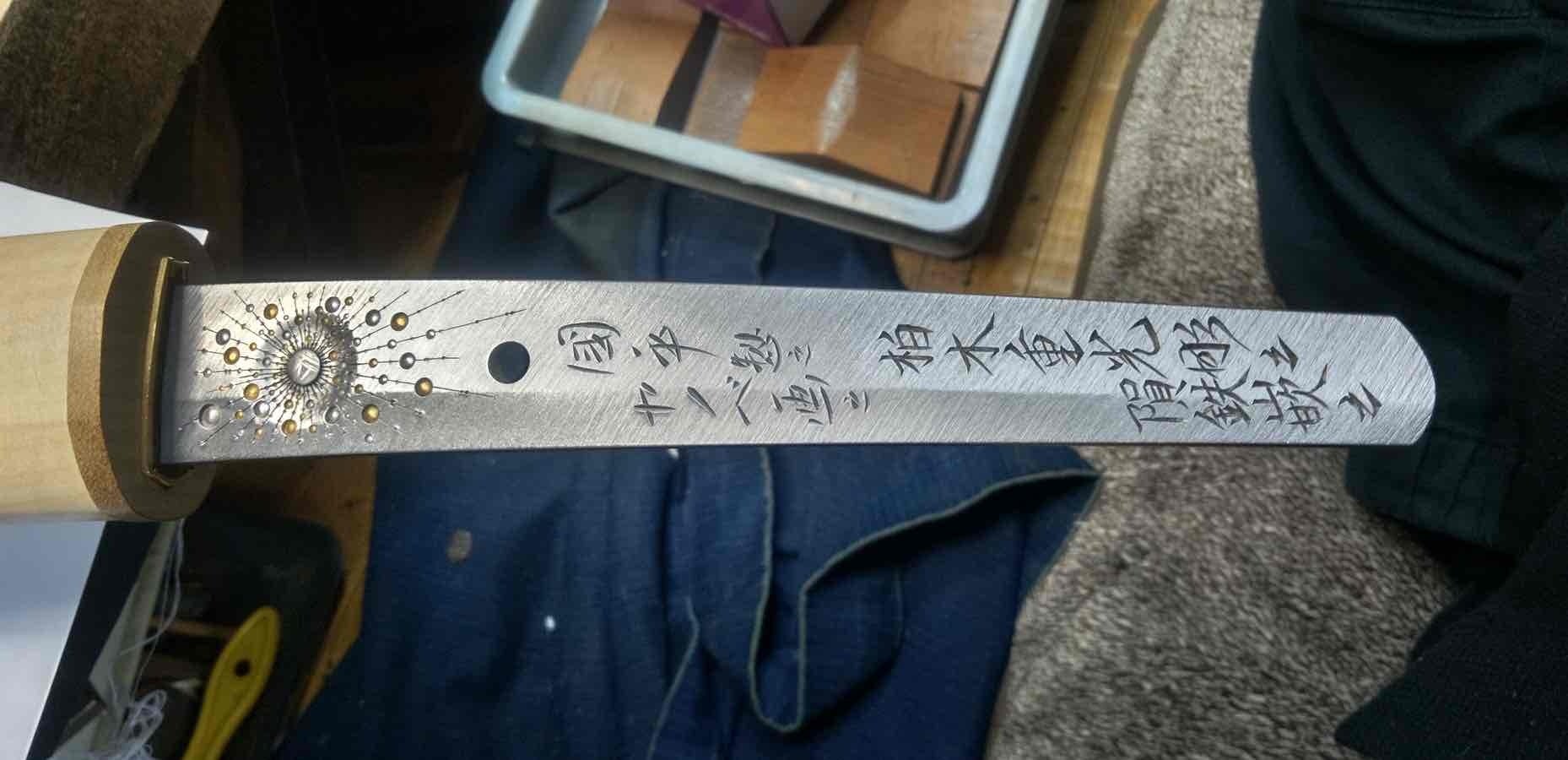 刀身は、河内國平に加え、河内の薫陶を受けた4人の刀匠によってつくられます。髙見太郎國一は、河内の一番弟子であり、2018年に「現代刀職展」(日本美術刀剣保存協会主催)において高松宮記念賞(最高賞)に選ばれ、刀剣界における最高位である「無鑑査 認定者」に最年少で認定されています。つづく小宮六郎國天、金田七郎國真も「現代刀職展」で数々の賞を受賞。さらに河内一平は「新作日本刀 研磨 外装 刀職技術展覧会」(日本刀文化振興協会主催)において経済産業大臣賞(最高賞)を受賞するなど、それぞれ河内の技や想いを受け継ぐ刀匠として知られています。