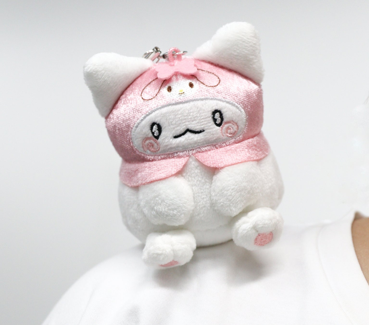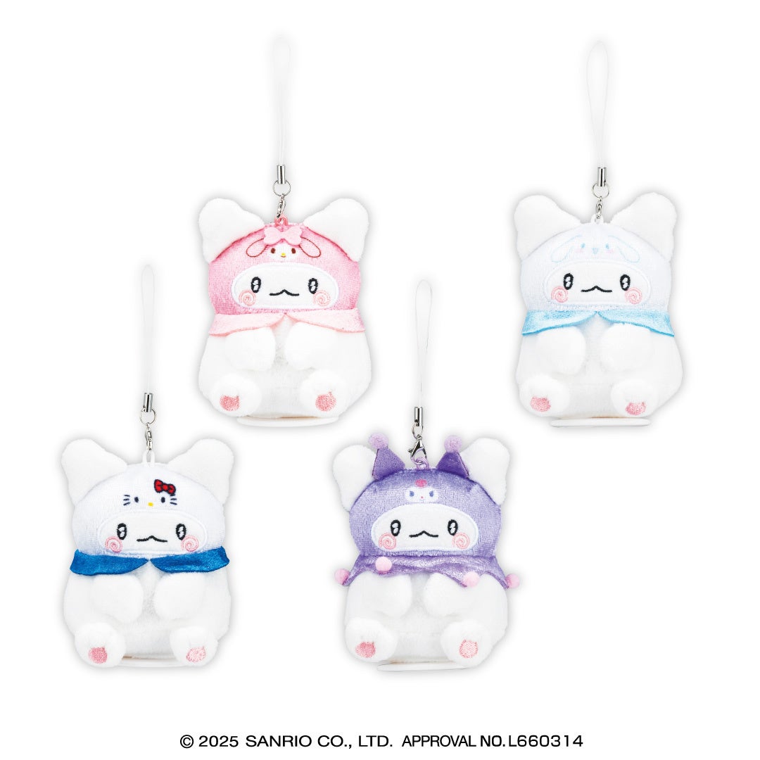ハローキティ、マイメロディ、クロミ、シナモロールになりきった「はなまるおばけ」のとってもキュートな手のひらサイズのマスコット。