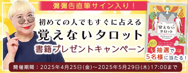 株式会社レンサ(本社:東京都渋谷区、代表取締役:武井哲也)は、2025年4月25日(金)より、運営する公式占いサイト「ホロスコープ|彌彌告の占い」にて『彌彌告直筆サイン入「初めての人でもすぐに占える 覚えないタロット」プレゼントキャンペーン』の提供を開始いたしました。
