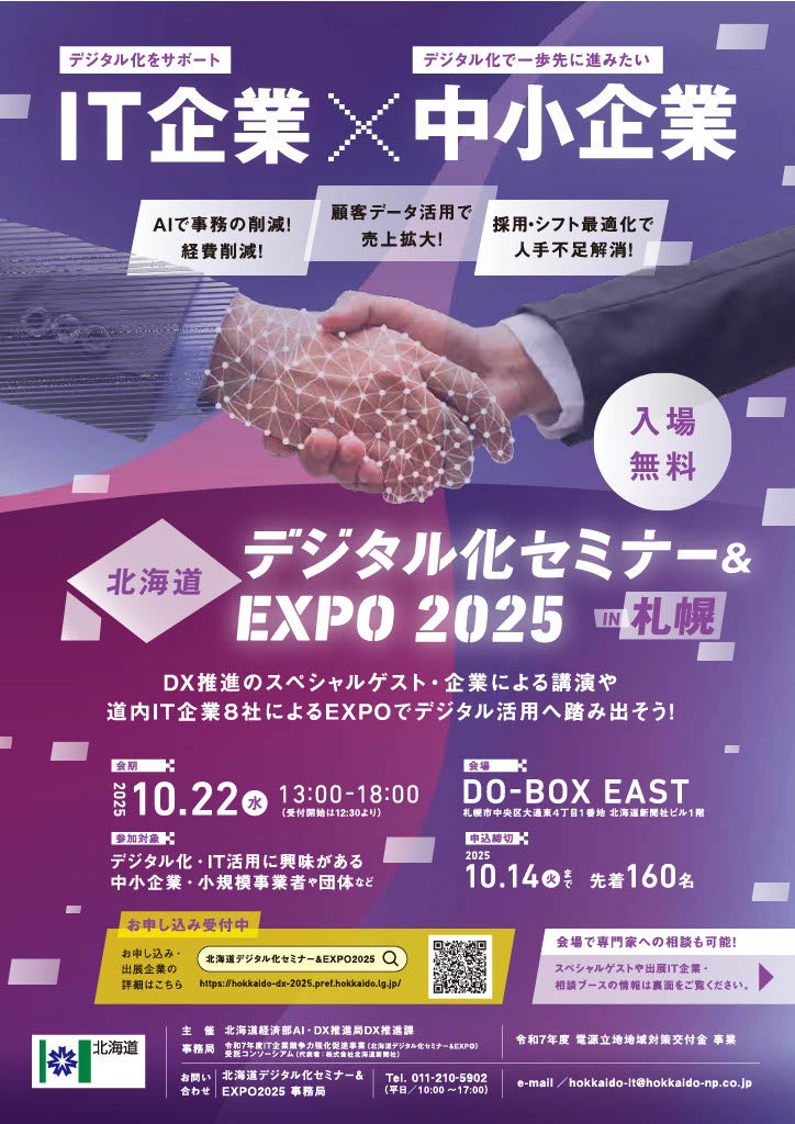 「北海道デジタル化セミナー&EXPO2025 in函館」を開催します!(2025年10月28日[火] 函館市民会館3階大会議室[函館市湯川町1-32-1])