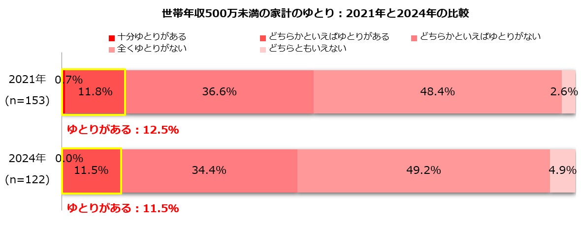 2.家計のゆとり:世帯年収別比較、その2021年と2024年の比較
