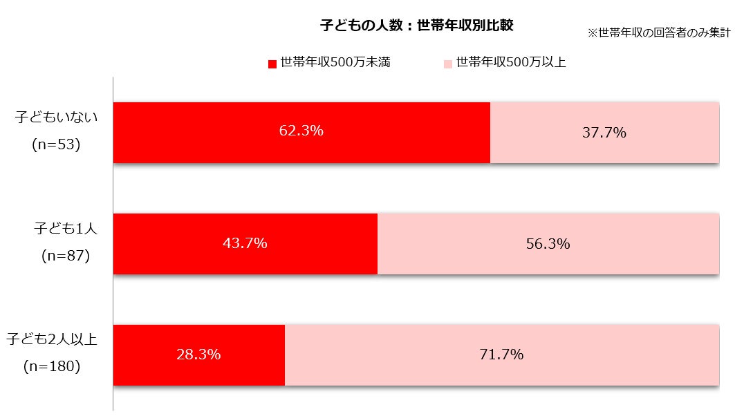子ども多いほど家計にゆとりある傾向/世帯年収500万を境に3倍差