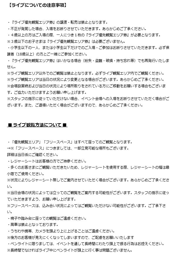 ※小学生以下の一人、または小学生以下だけでの『ライブ優先観覧エリア券』のお申し込みは禁止となります。必ず保護者の方がお申し込みください。