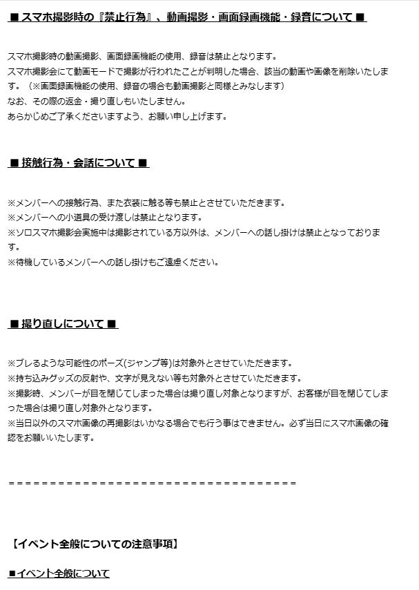 ※集合写真撮影会は、メンバー5人とお客様の撮影となります。(ただし、一人で立つことが出来ないくらいの小さなお子様の場合に限り、保護者付き添いでの撮影が可能となります。)