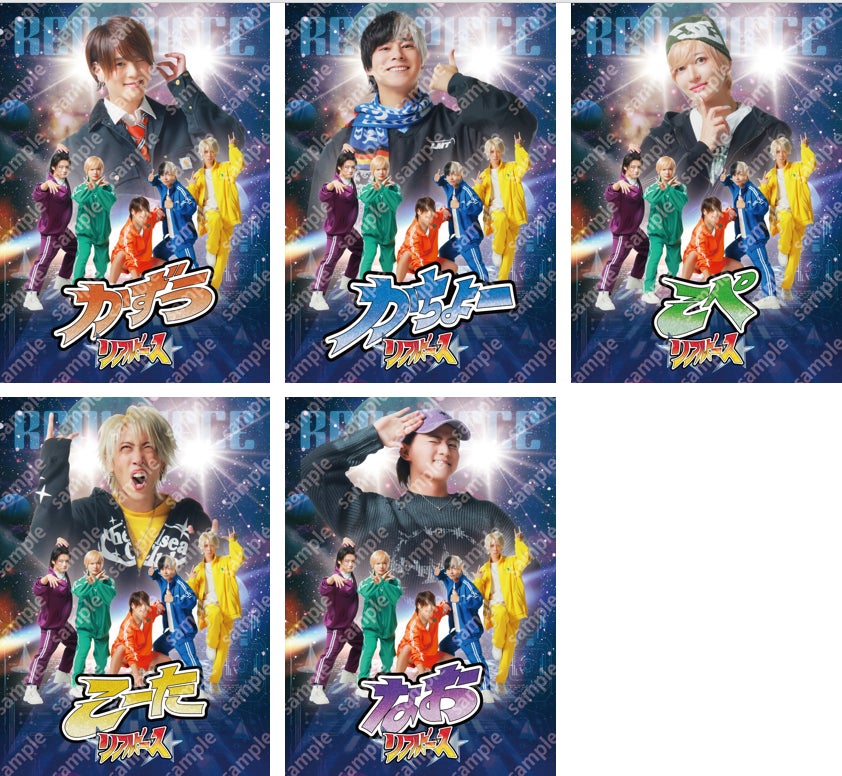 ※雑貨アイテム:ラバーキーホルダー、うちわ型アクリルキーホルダー、アンブレラマーカー、証明写真風ステッカー、クリアカードのいずれか