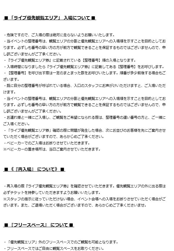 ※ライブ優先観覧エリア券の番号順のご入場となります。