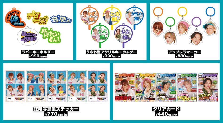 ラバーキーホルダー・うちわ型アクリルキーホルダー・アンブレラマーカー・証明写真風ステッカー・クリアカードも同時展開しております。