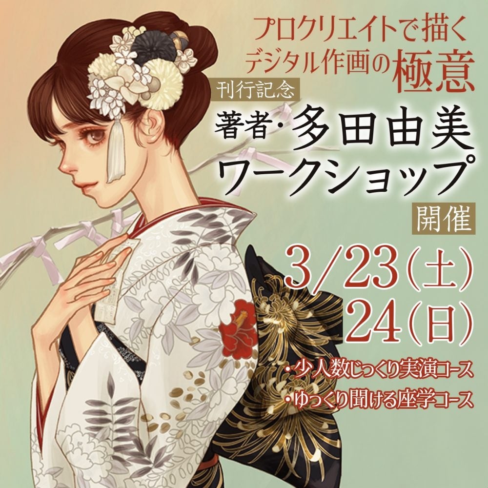 『プロクリエイトで描くデジタル作画の極意』著者・多田由美によるワークショップです。2つの形式で学べるコースを実施いたします。プロクリエイトでイラストや漫画を描いていて気になること、使ってみてわからないこと、書籍を読んで深掘りしたいと思ったことを、著者の多田さんから受講できるスペシャルイベントです。