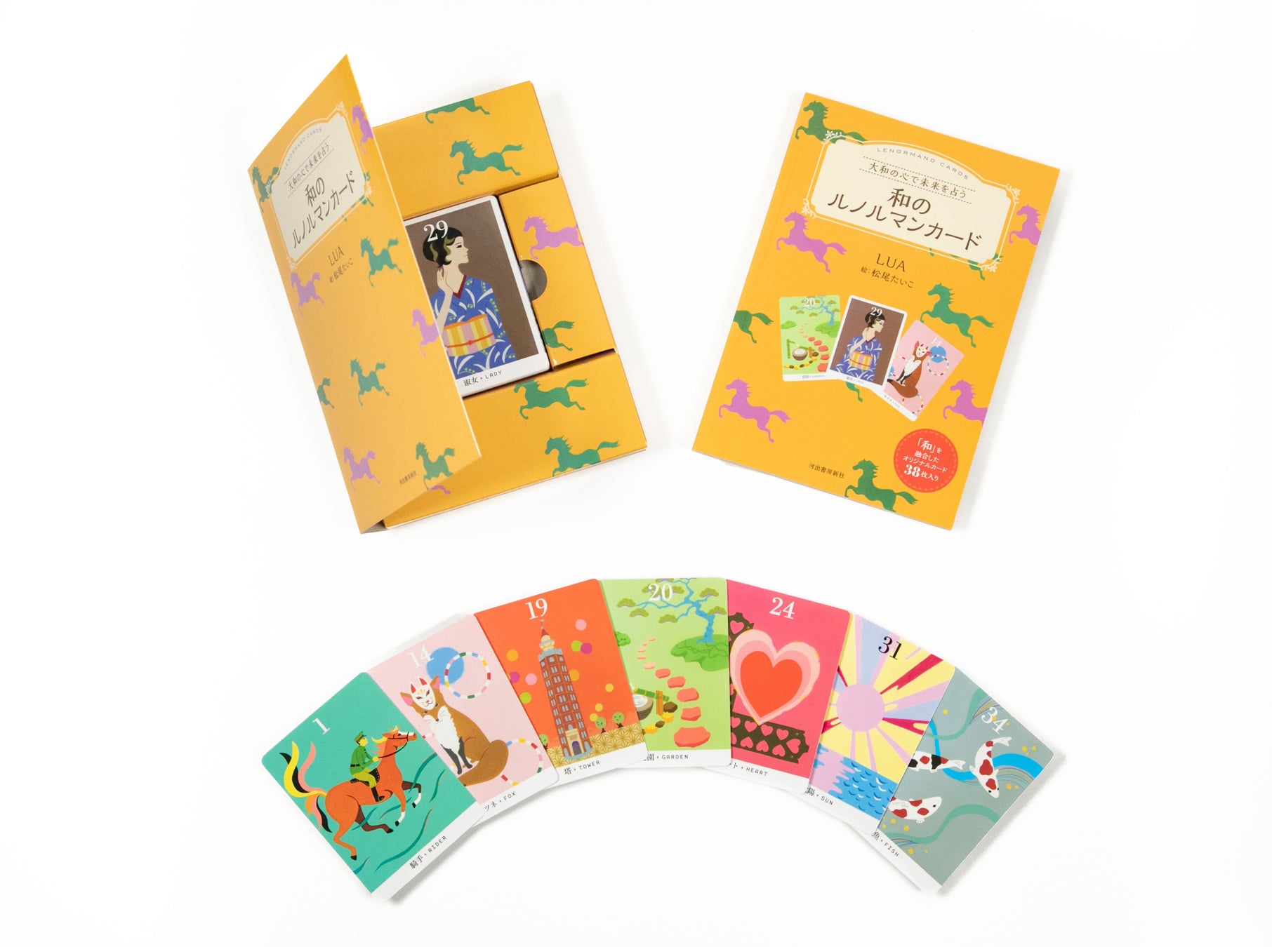 本書は、欧米を中心にヒットが拡大し、現在日本国内でも注目を集める「ルノルマンカード」に、和のエッセンスを融合させたオリジナルアイテム。