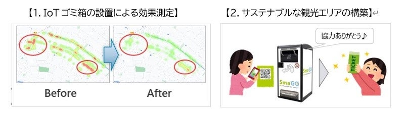 データを地図上に表示することでごみの分布図を作成。事前事後の違いを検証