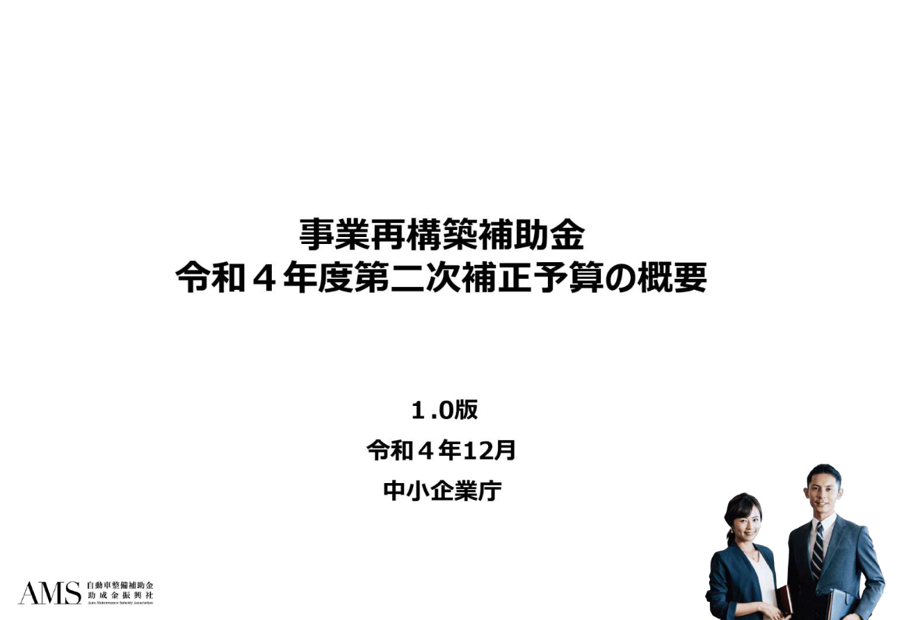 ファインピース株式会社(本社:東京都新宿区、代表取締役:木下 寛士)は、自動車整備補助金助成金振興社(略称:AMS、https://www.subsidyassociation.com/ )と共同で、最大1,500万円もらえる業況が厳しい事業者への支援(見直し・継続)事業再構築補助金の無料相談サービスを開始することを発表した。