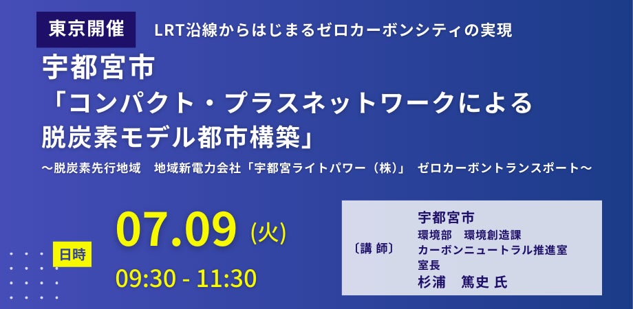 【JPIセミナー】宇都宮市「コンパクト・プラスネットワークによる脱炭素モデル都市構築」7月9日(火)<東京開催>