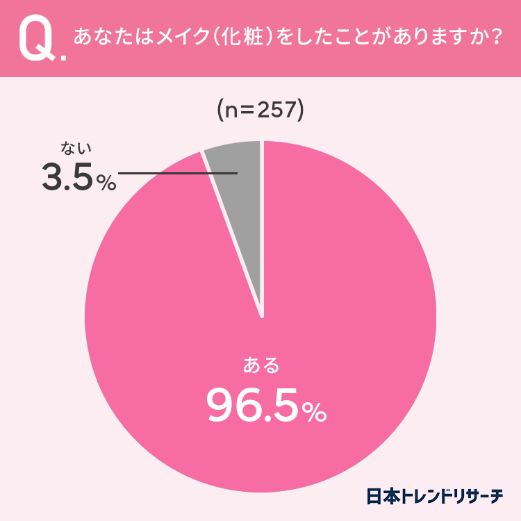 96.5%と、ほとんどの方が「メイクの経験あり」と回答しています。