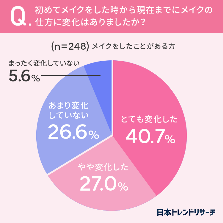 続いて、初めてメイクをした時から現在までにメイクの仕方に変化はあったか聞いてみました。