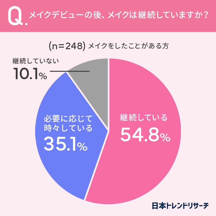 54.8%と、半数以上の方がメイクを継続しているようです。