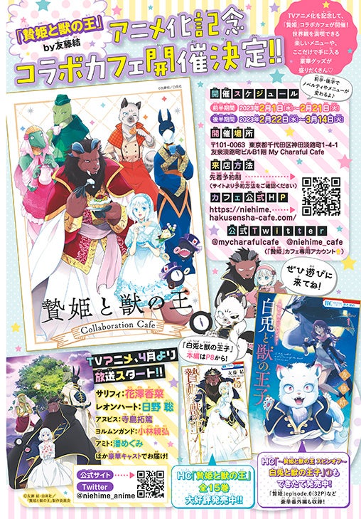 本編の「贄姫と獣の王」のアニメ化(2023年4月放送開始)を記念して、コラボカフェが開催されます。