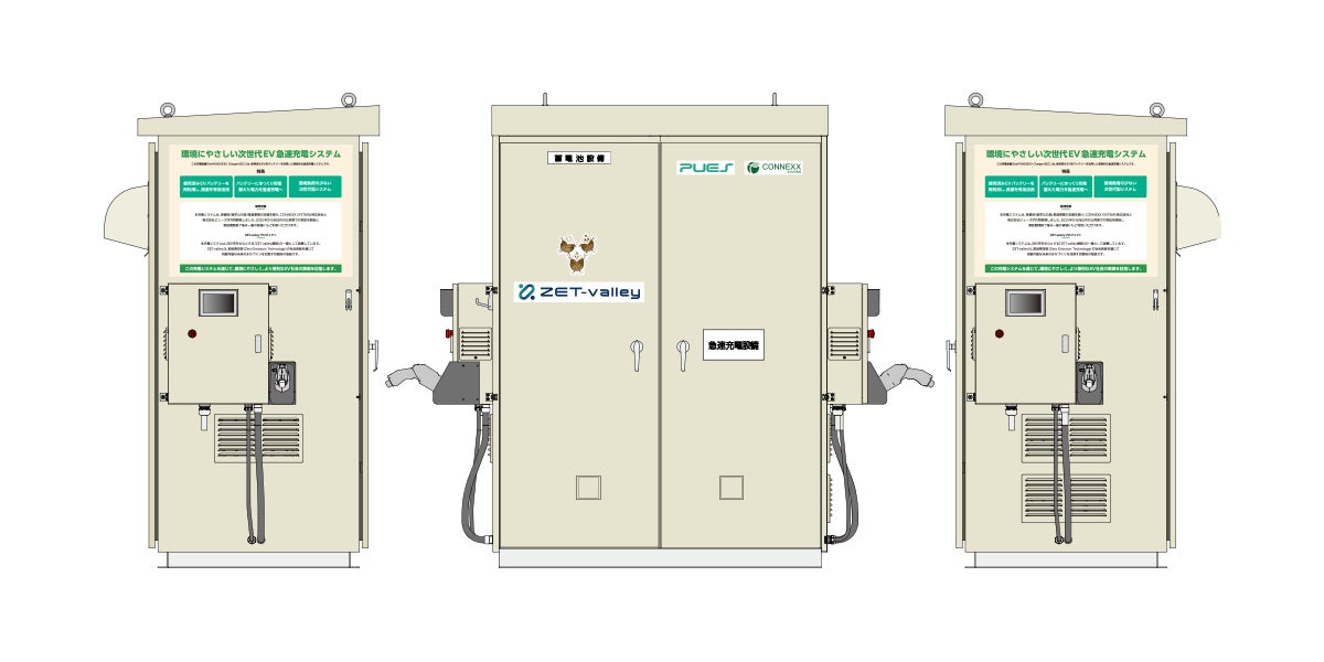 「ZET-valley」構想における共創プロジェクト初の社会実装事例として、CONNEXX(コネックス) SYSTEMS(システムズ)(株)(精華町)と(株)ピューズ(神奈川県)が共同で、電気自動車の使用済み車載バッテリーを活用した、環境にやさしく、導入コストも抑えられる次世代型EV急速充電器を開発。