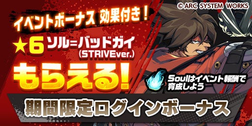 ログイン1日目で「★6 ソル=バッドガイ(STRIVEver.)」が手に入ります。