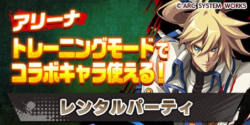アリーナリーグのトレーニングモードで、「★5 カイ=キスク」、「★6 ソル=バッドガイ」、「★6 ディズィー」など『GUILTY GEAR Xrd REV 2』コラボで登場したキャラクターを体験することが出来ます。実際にキャラクターを所持していなくてもパーティに組まれたレンタルパーティを回数限定で使用することができます。
