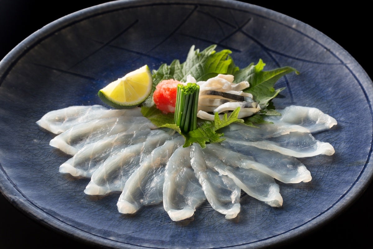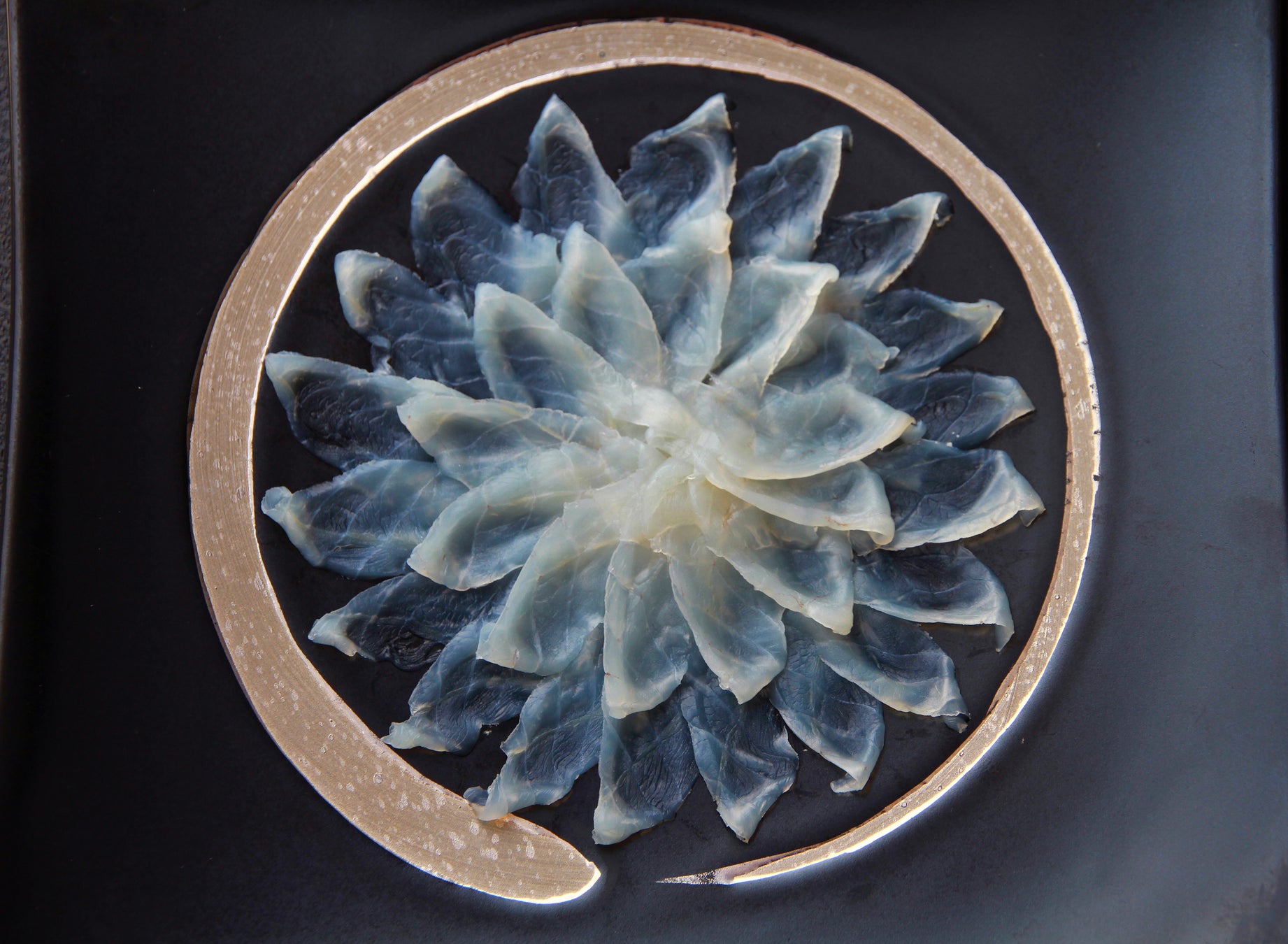 器に可憐な花が咲くようなてっさ(ふぐ刺し)