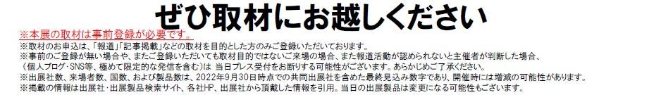 ※記載の出展社数・製品数・国数は、同時開催展を含む2022年9月30日時点での最終見込み数字であり、開催時には増減の可能性があります。