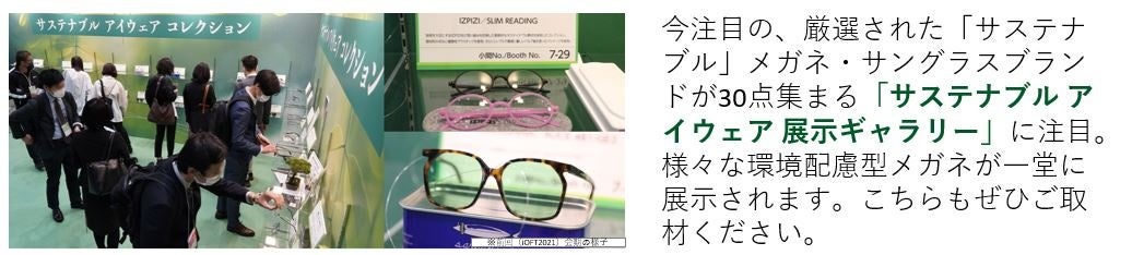 - 同時開催「国際メガネ展(iOFT)」のサステナブルメガネ30点も必見!
