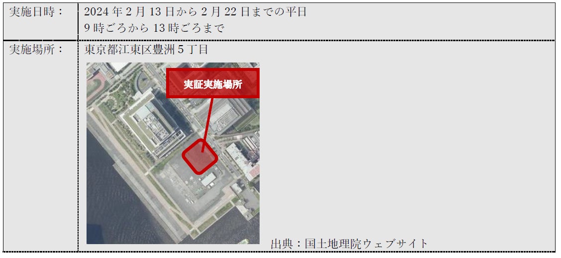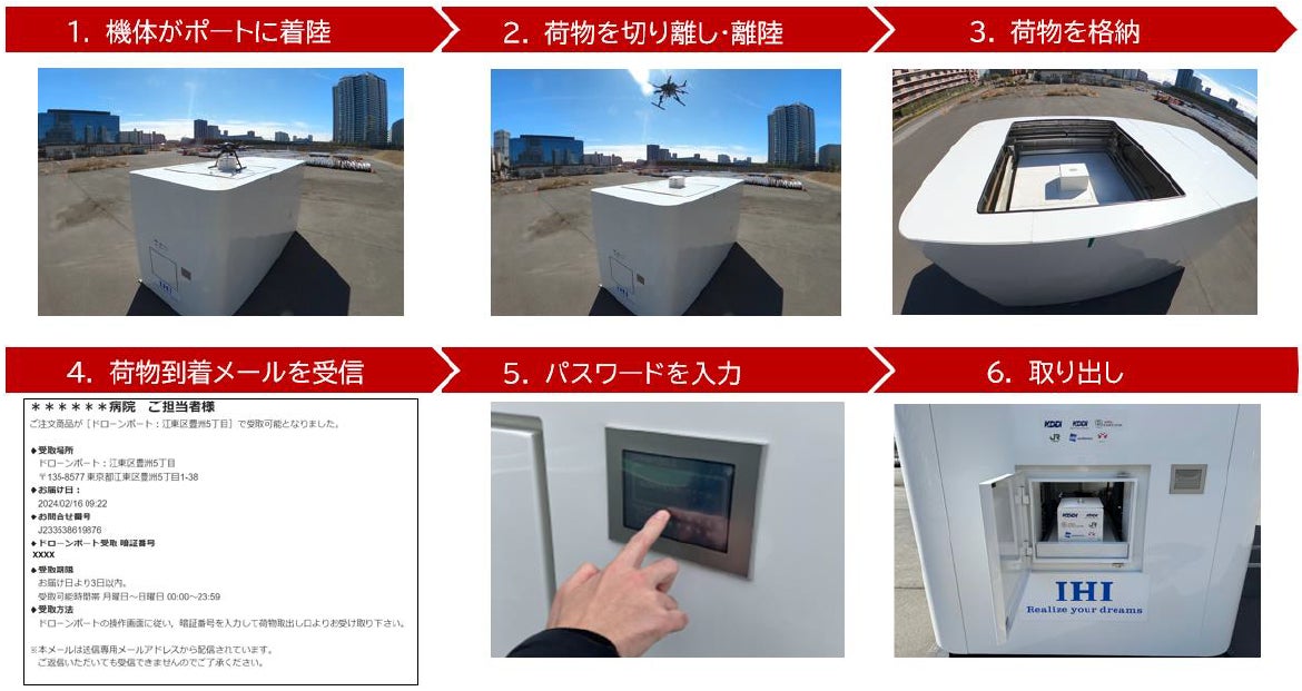 KDDI株式会社(本社:東京都千代田区、代表取締役社長 CEO:髙橋 誠)、KDDIスマートドローン株式会社(本社:東京都港区、代表取締役社長:博野 雅文)、日本航空株式会社(本社:東京都品川区、代表取締役社長 グループCEO:赤坂 祐二)、東日本旅客鉄道株式会社(本社:東京都渋谷区、代表取締役社長:深澤 祐二)、株式会社ウェザーニューズ(本社:千葉県千葉市、代表取締役社長:草開 千仁)、株式会社メディセオ(本社:東京都中央区、代表取締役社長:今川 国明)は2024年2月13日から2月22日、東京都江東区にて、ドローンポートを活用した医薬品授受管理の実証(以下 本実証)を実施しました。