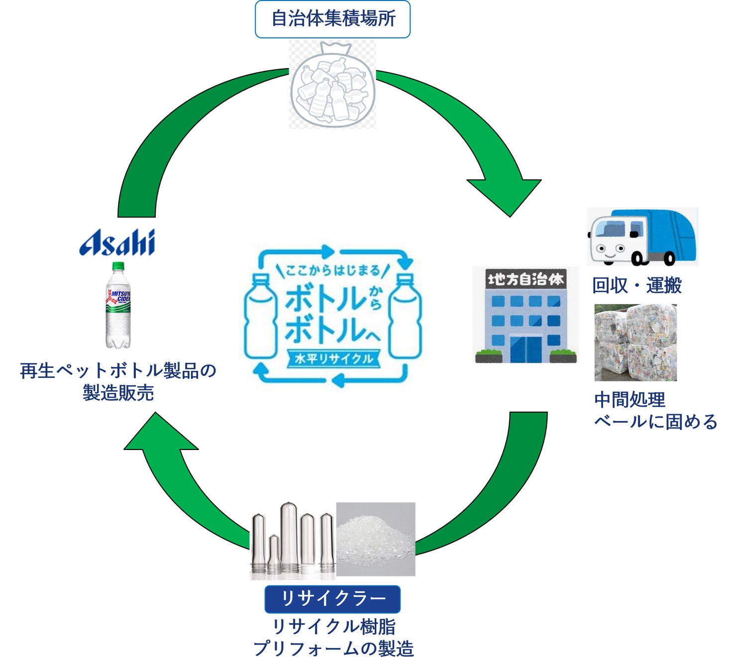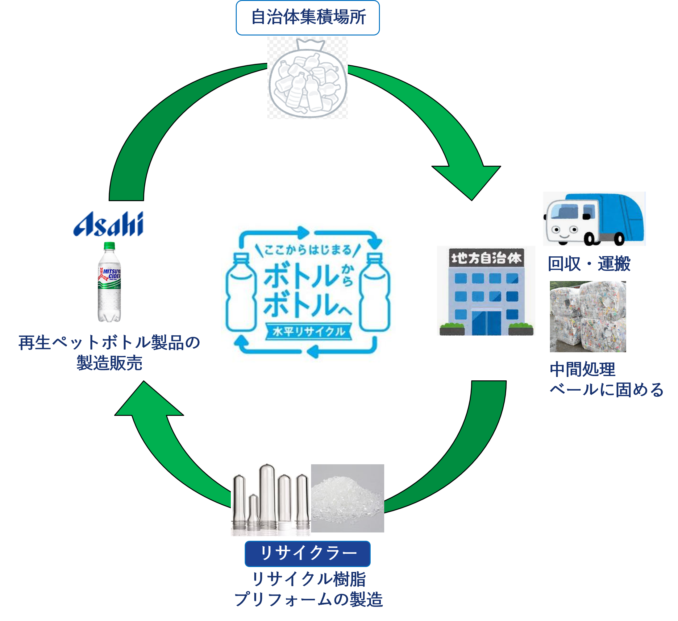 アサヒ飲料は、メカニカルリサイクルとケミカルリサイクルの組み合わせにより、リサイクル率の向上を目指しています。