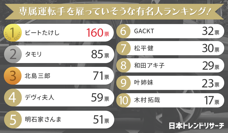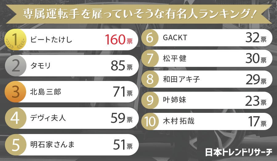 日本トレンドリサーチ・専属運転手を雇っていそうな有名人に関する調査