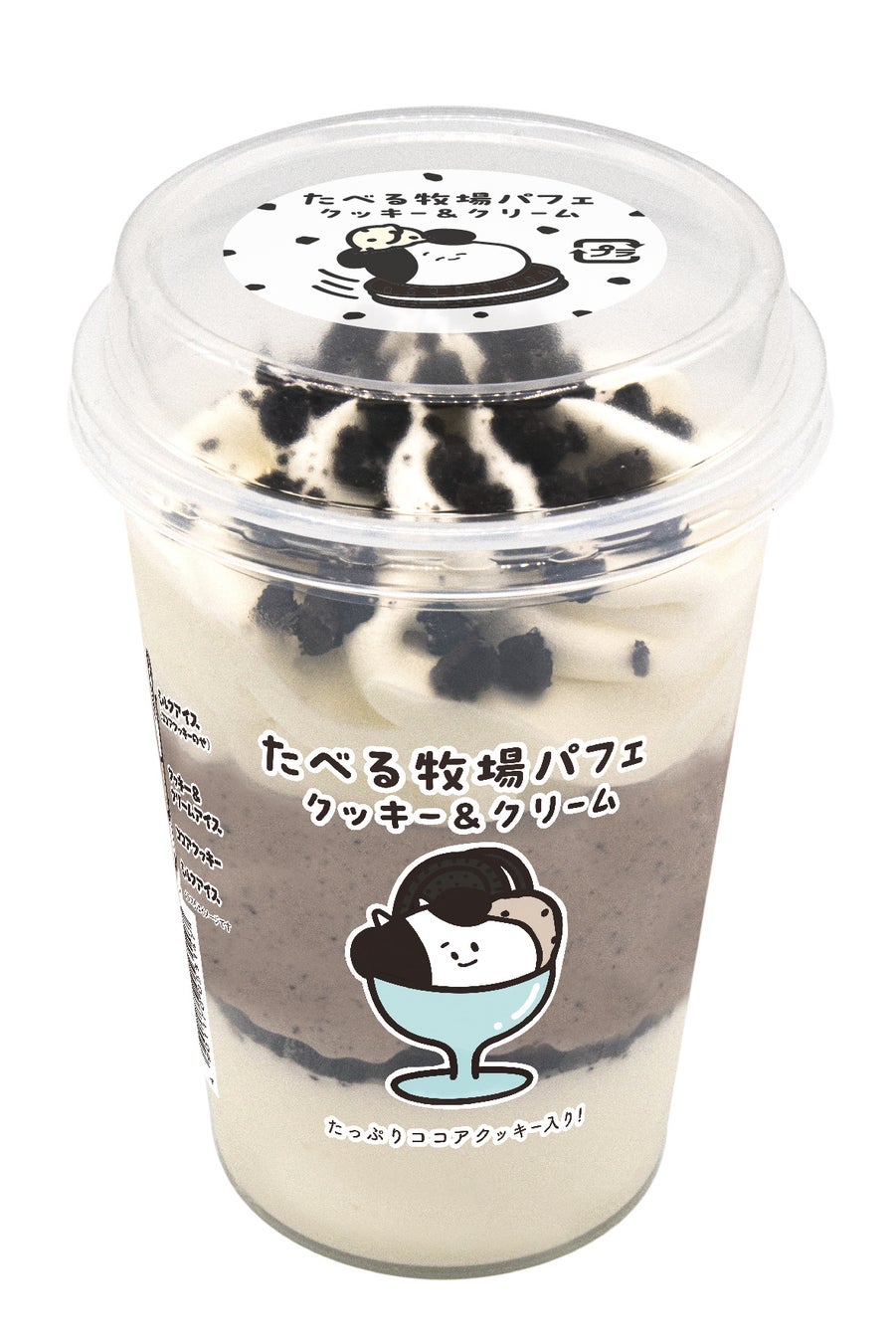 【内容】ファミリーマートの人気アイス「たべる牧場」シリーズの3層仕立てのパフェアイスです。北海道産牛乳を56%使用したコクがありながらも後味すっきりしたミルクアイス、クッキークリームアイス、天面と中間層にはココアクッキーをトッピングしました。※数量限定
