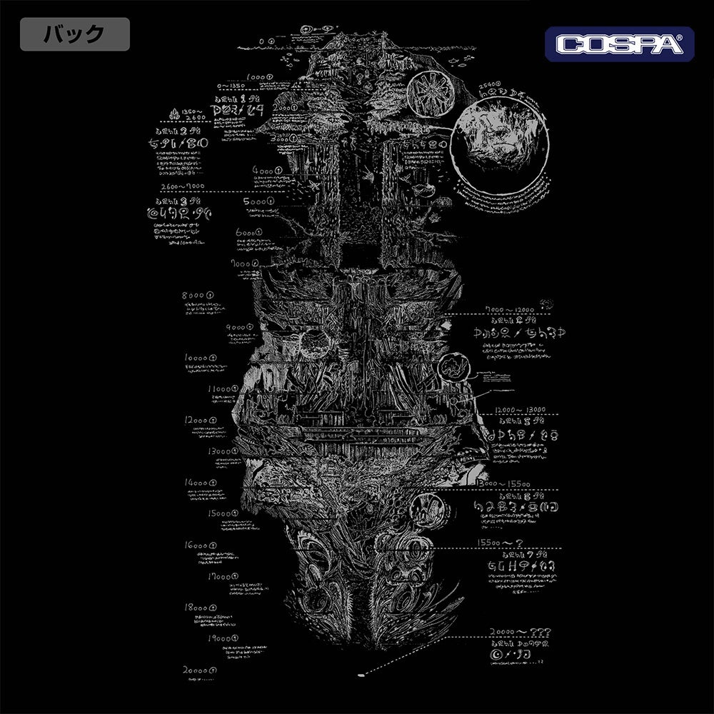 ・バックにはアビスの地図を大きくプリント。袖にはオースの街から最深部までの階層をデザイン。メイドインアビスの世界を全身で感じられます。