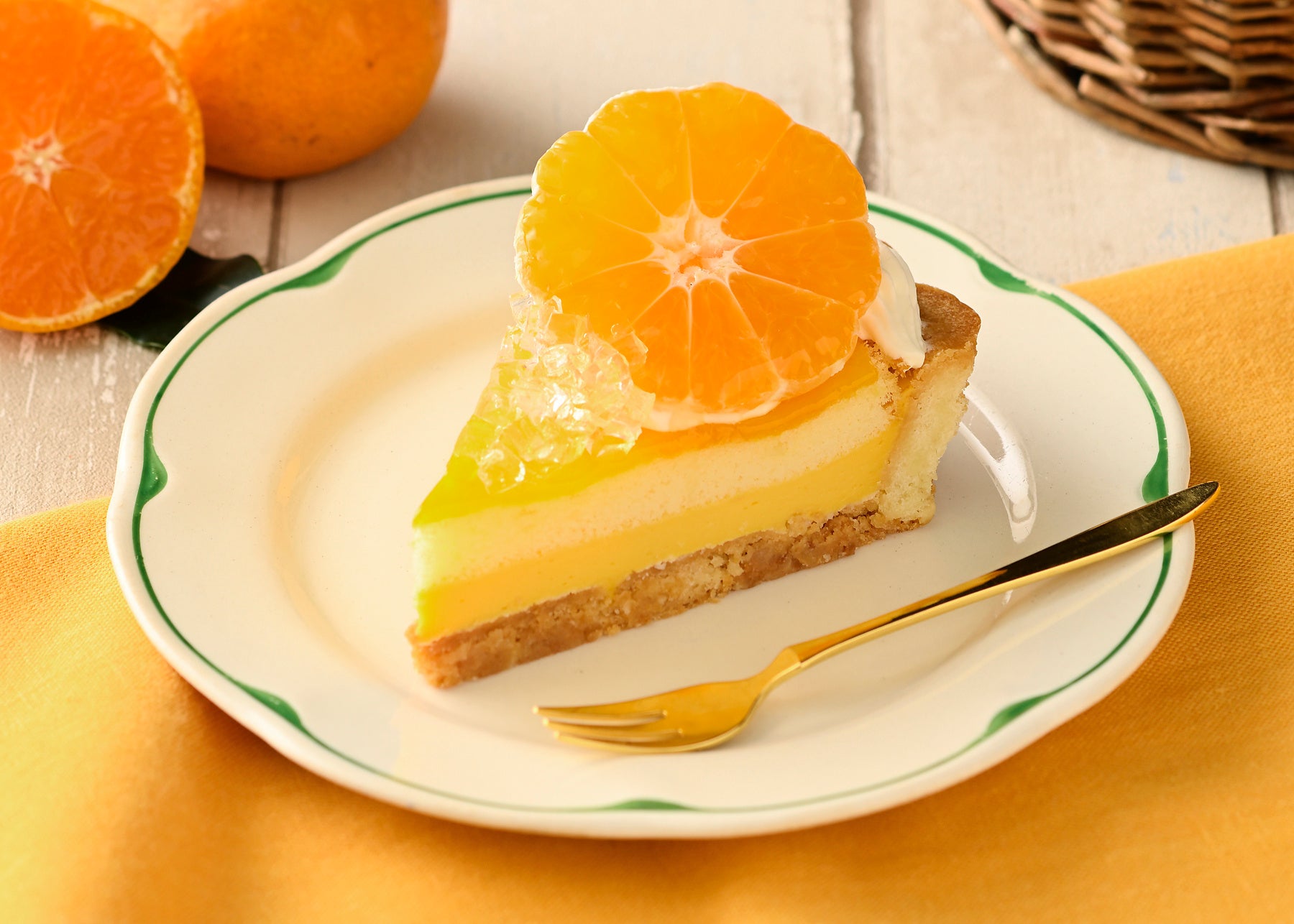 果汁たっぷりで爽やかな香りと甘みが特長の愛媛県産「温州みかん」を飾ったタルトです。カスタードとジャムにも温州みかんを使用して、爽やかな味わいに仕立てました。ジューシーな温州みかんと、タルト、カスタードのハーモニーをお楽しみください。