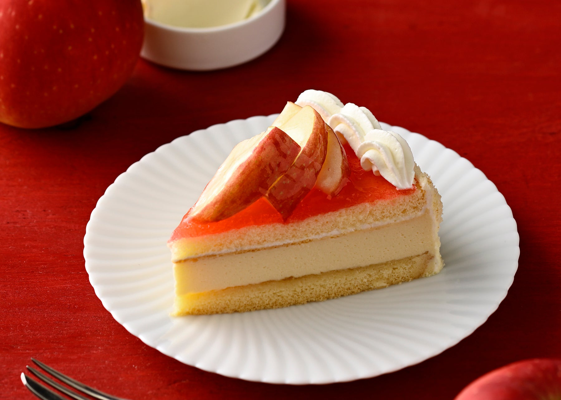 クリーミーでコク豊かな「キリ クリームチーズ」を使用し、焼き上げたベイクドチーズ(ふじりんごピューレ入り)にふじりんごジャムを重ねて、上面にふじりんごを飾りました。ふじりんごの爽やかな甘みとクリームチーズの乳味とコクがほどよくマッチします。※クリームチーズ中「キリ クリームチーズ」を52%使用。
