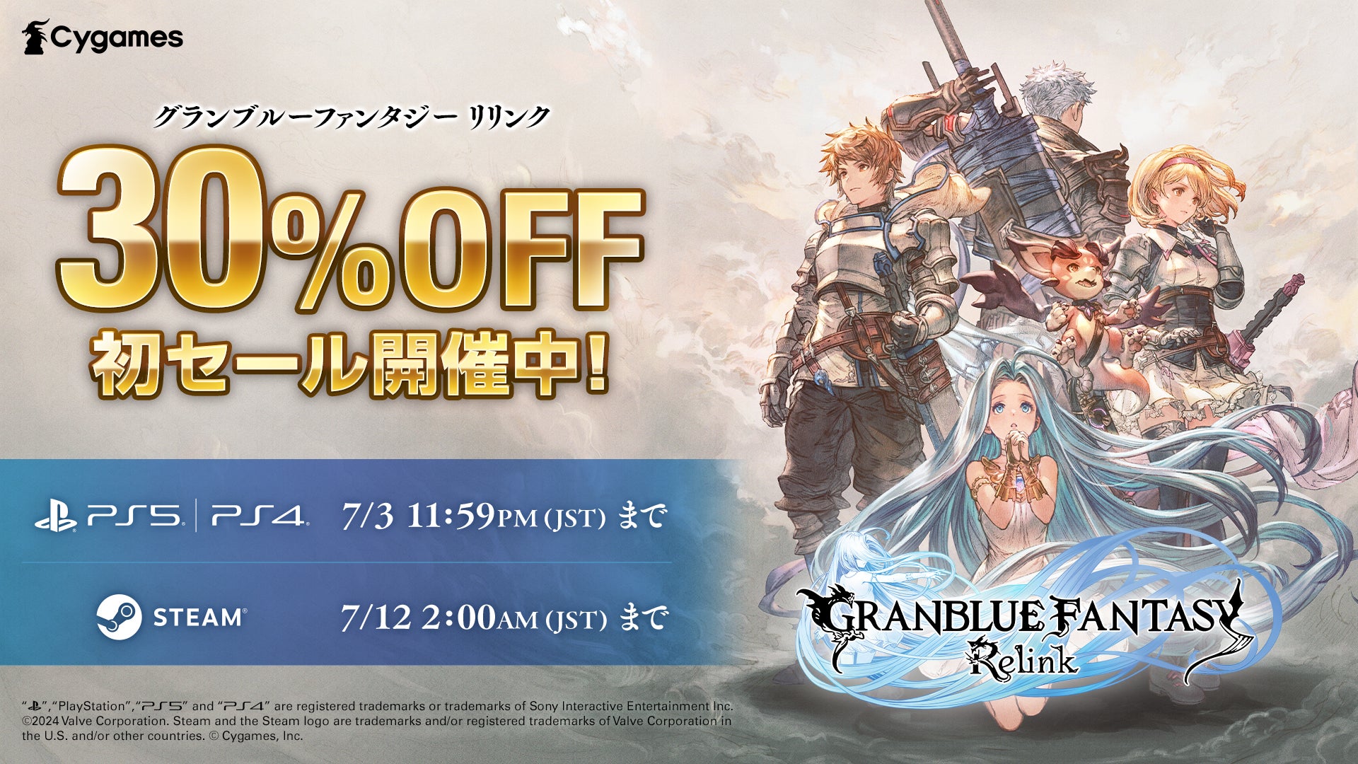 ゲームの企画・開発・運営事業を展開する株式会社Cygames(以下、サイゲームス 本社:東京都渋谷区、代表取締役社長:渡邊耕一)は、アクションRPG『グランブルーファンタジー リリンク』について、すでに実施中のPlayStation®5/PlayStation®4に加え、Steamでも発売後初となるセールを開始したことをお知らせいたします。