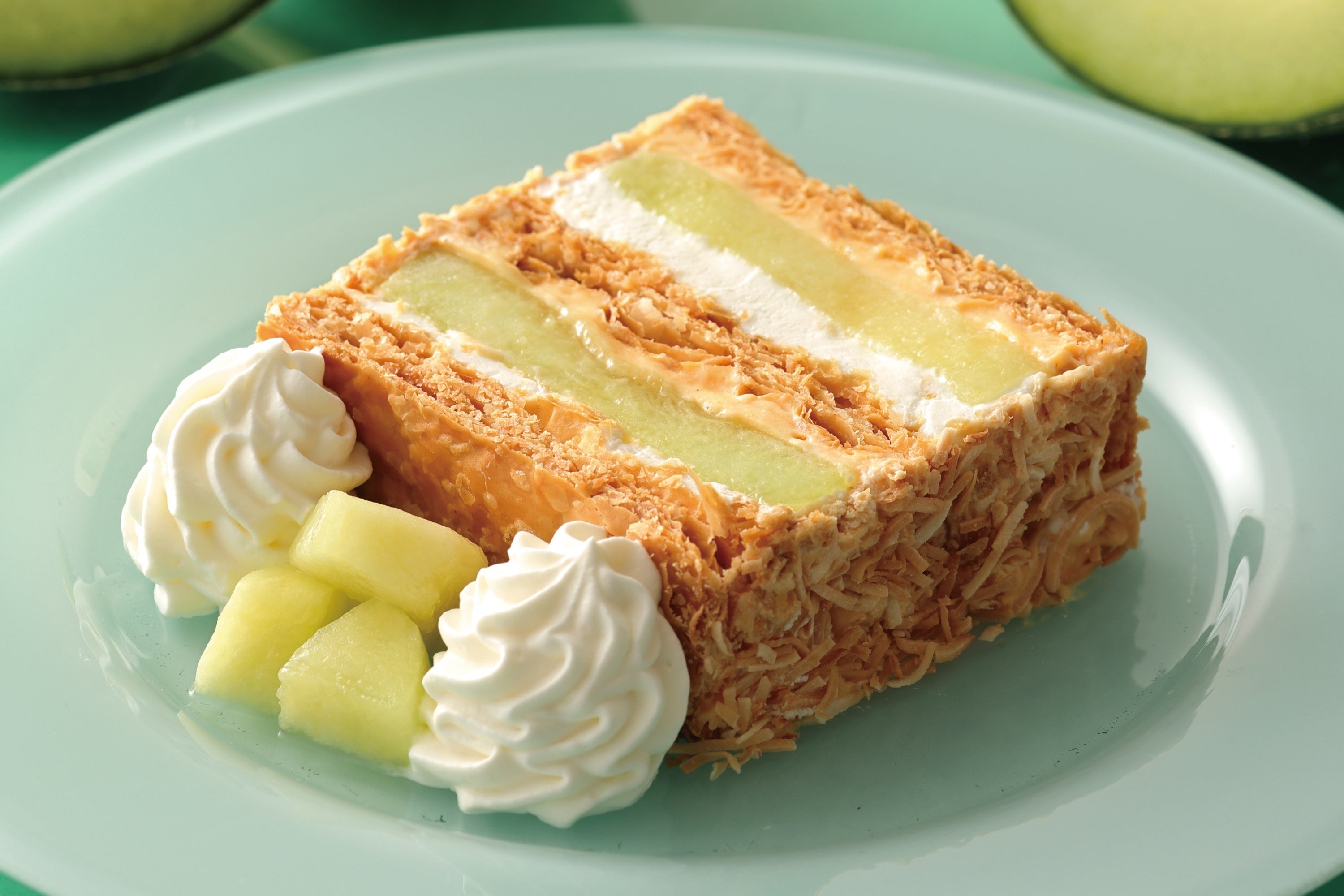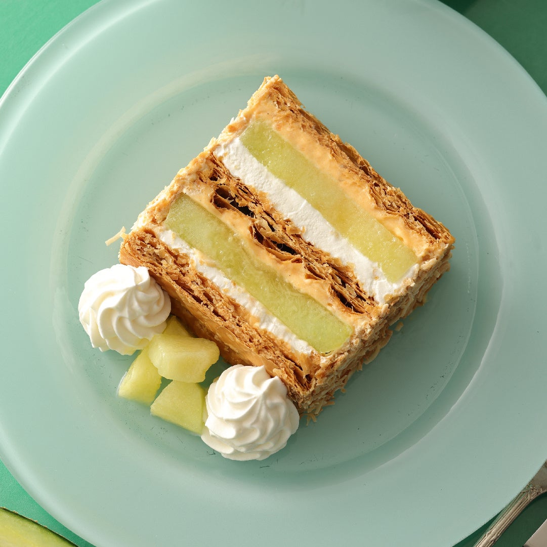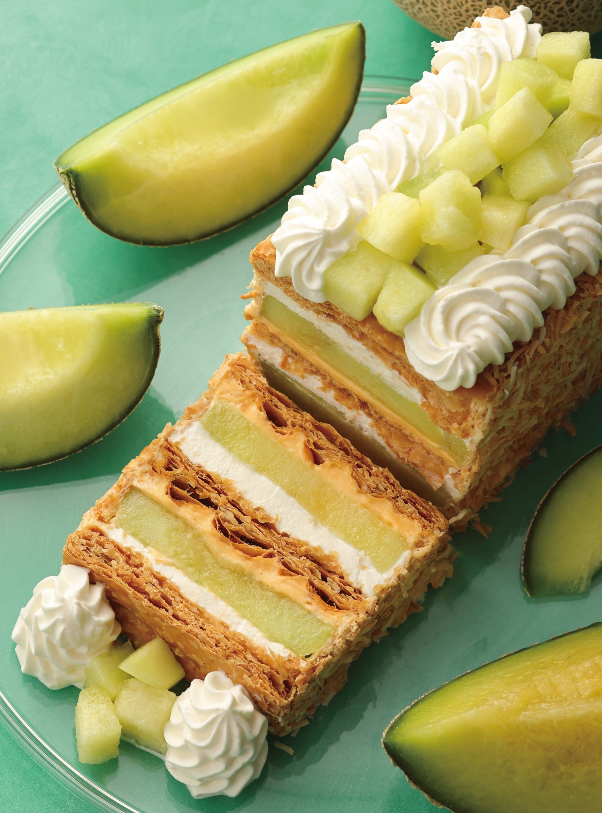 キハチを代表するデザート“ナポレオンパイ”を旬の素材でアレンジし、季節ごとの味わいを提案する<キハチのパイシリーズ>。今回はメロン生産量26年連続日本一(※1)を誇る茨城県で生まれた、爽やかな甘さとなめらかな果肉の“イバラキング”を楽しむ特別なパイが青山本店限定で新登場します。