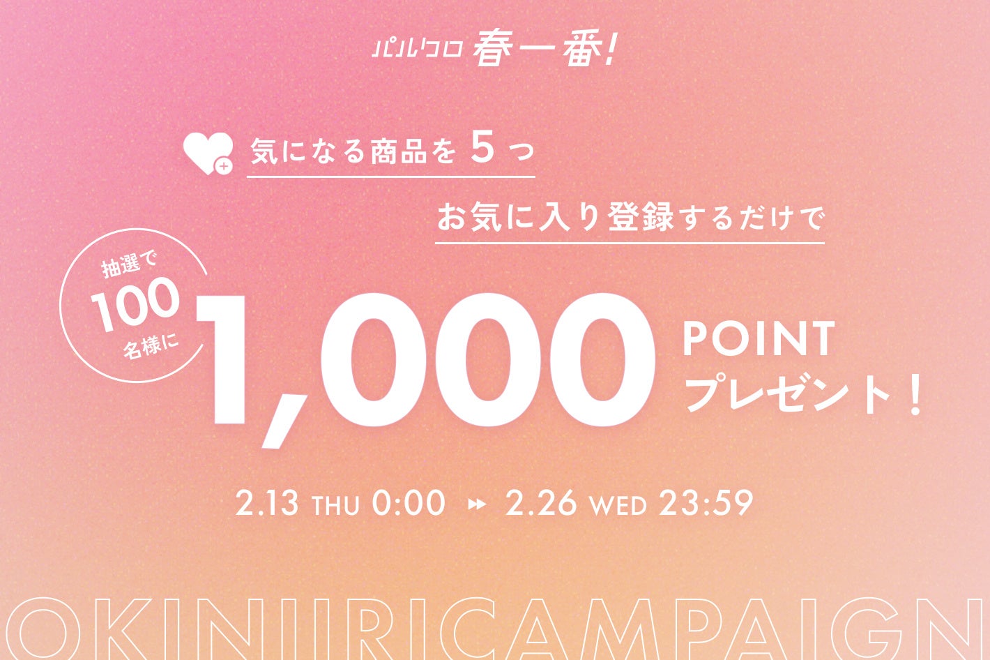 パルクローゼット :2月13日(木)0:00 〜 2月26日(水) 23:59