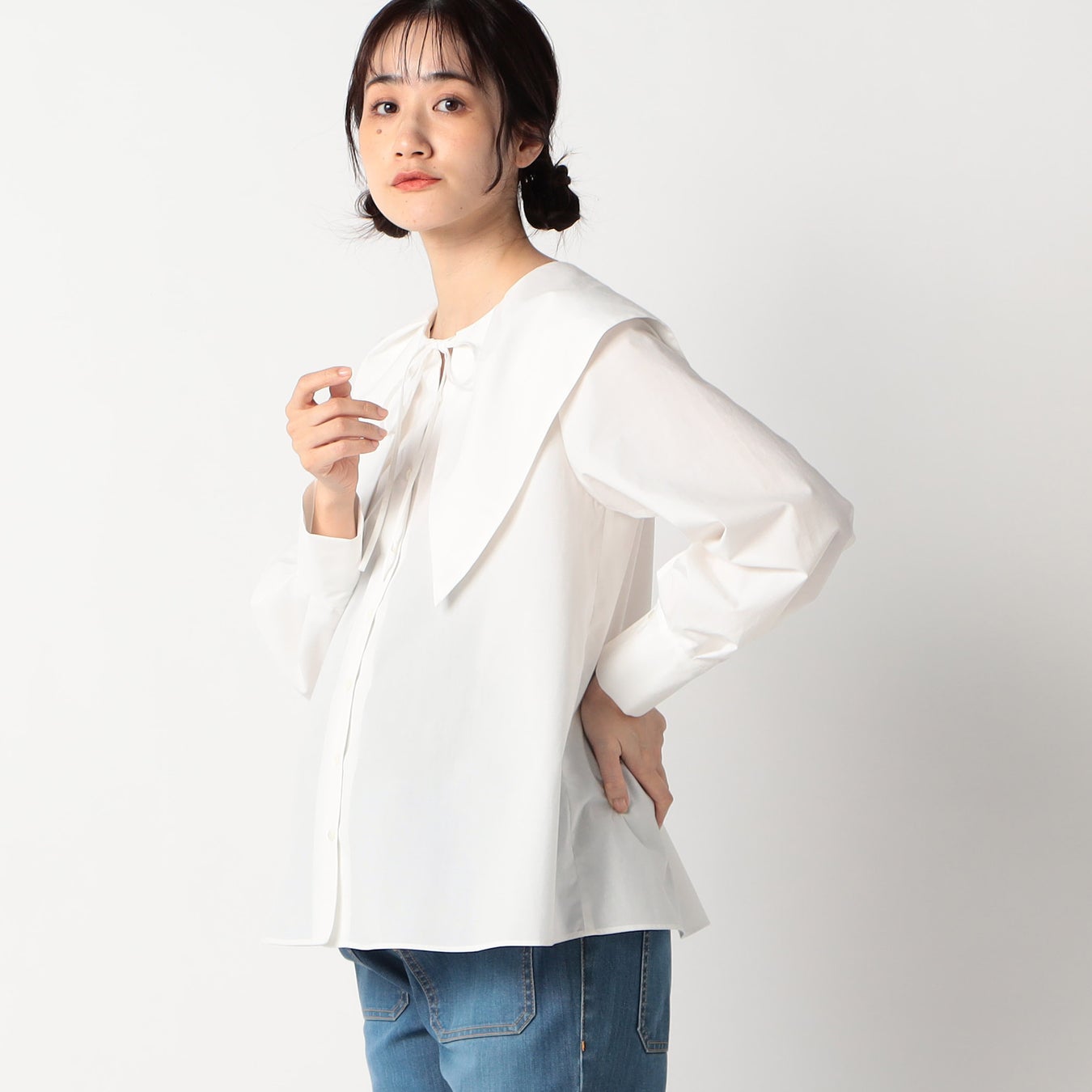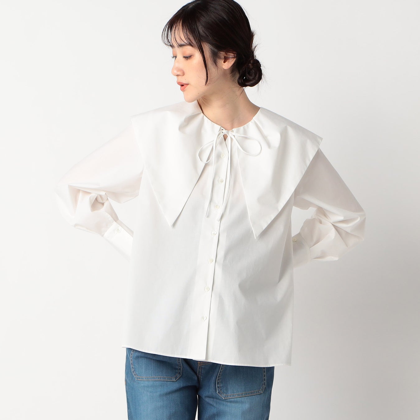 - 前後2WAY着用できるビッグカラーブラウス