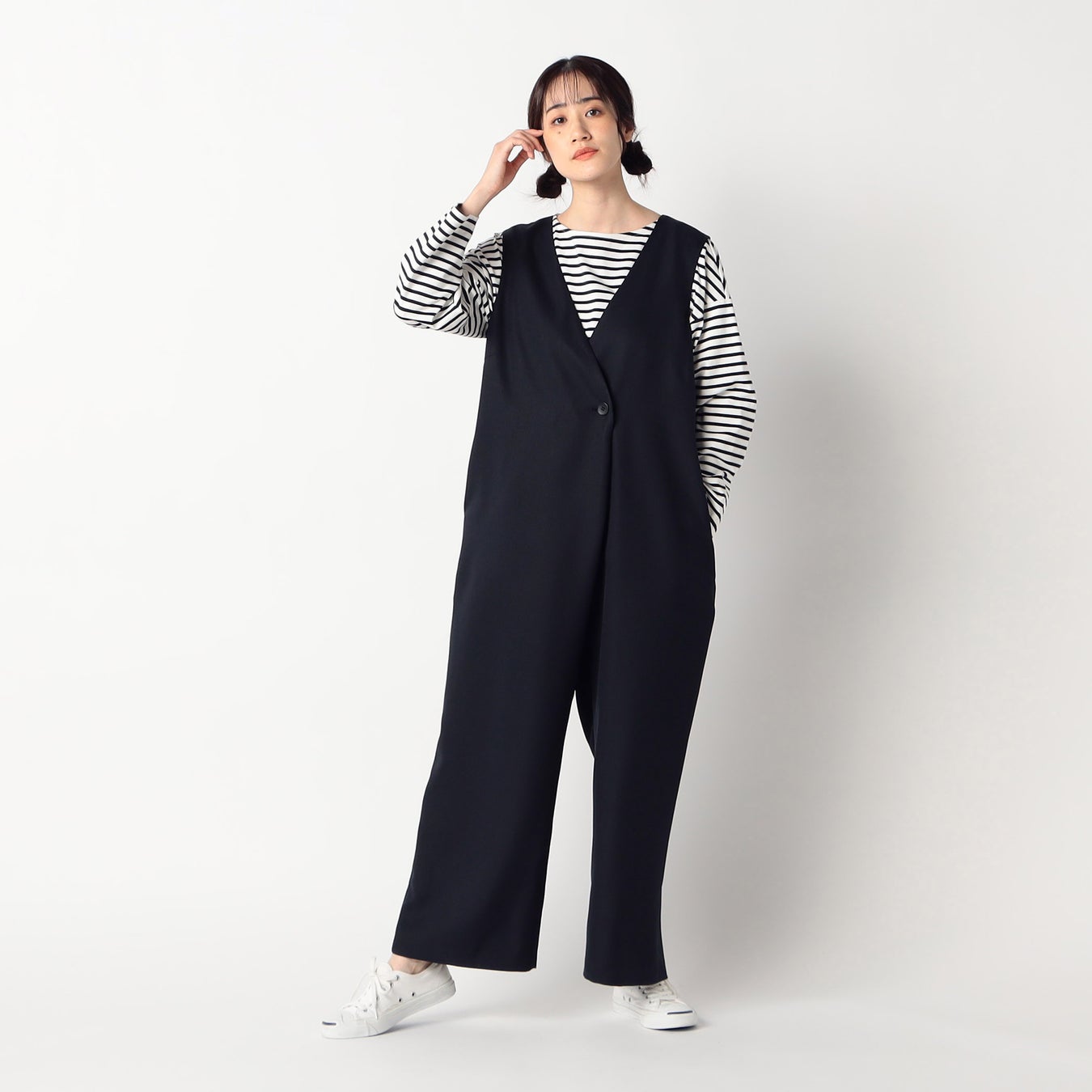 妊娠中もスマートでハンサムな着こなしが叶う!コムサ・ブロンドオフのサロペット