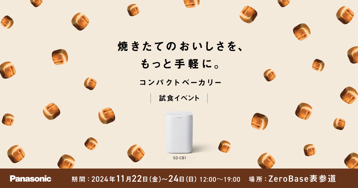 パナソニック株式会社は、2024年11月22日(金)から24日(日)までの3日間、東京・表参道のZeroBase表参道にて、コンパクトベーカリーの試食体験イベントを開催します。(入場無料)