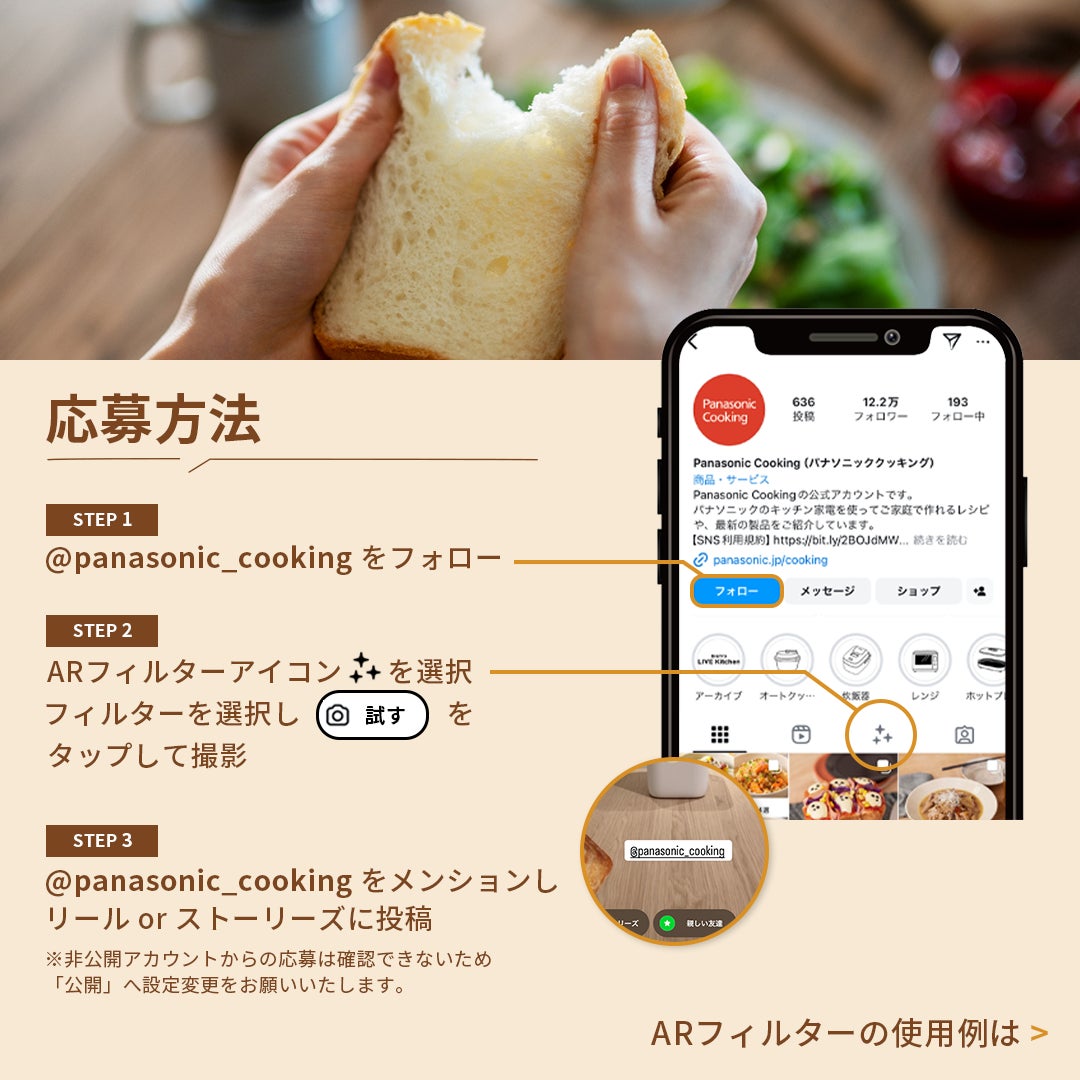 - ご応募には、Panasonic CookingのInstagram公式アカウントのフォローが必要です。