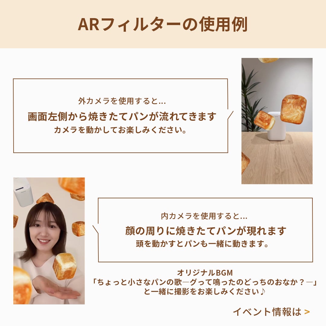 オリジナルのARフィルターを使った動画や写真を投稿した方の中から抽選で3名様にコンパクトベーカリー SD-CB1をプレゼントします。
