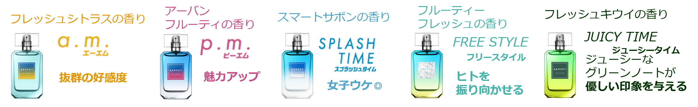 約1年ぶりとなる新商品「プレジャーコレクション」は、“女子ウケ”する香りでブランド人気No.1(※3)の「スプラッシュタイム オードトワレ」をアレンジ。花々とパウダリーの甘さが感じられるフローラルサボンの香りです。他人(女子)を意識するのでなく、自分自身の充実=“自分ウケ”にフォーカスした香りは、フローラルや甘さのある香りを使ったことのない男性にこそ試していただきたい香水です。