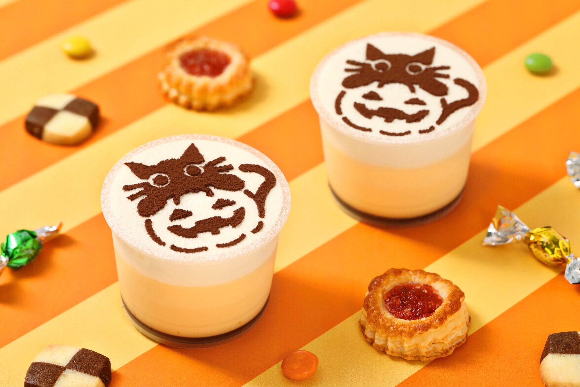 こだわり:“ハロウィン×ねこ”を楽しめる限定のイラストプリンをご用意。看板商品『なめらかプリ