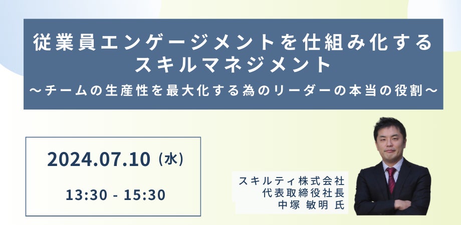 【JPIセミナー】「従業員エンゲージメントを仕組み化するスキルマネジメント ~チームの生産性を最大化する為のリーダーの本当の役割~」7月10日(水)開催