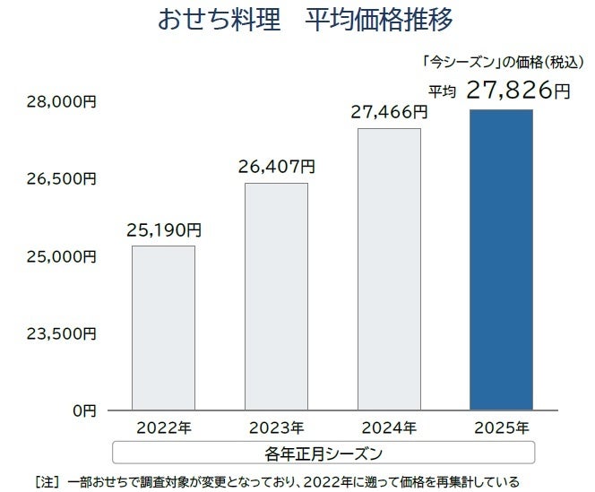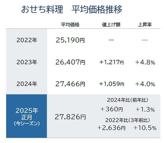 2025年正月のおせち、平均2万7826円 節約志向を意識したコスパ重視の値付け目立つ