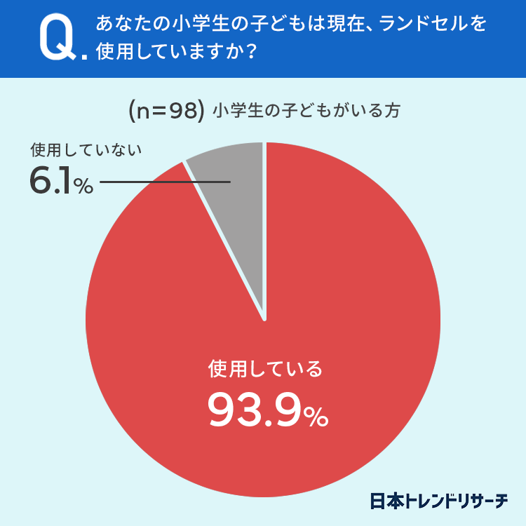 93.9%と9割以上の方が「ランドセルを使用している」と回答しました。