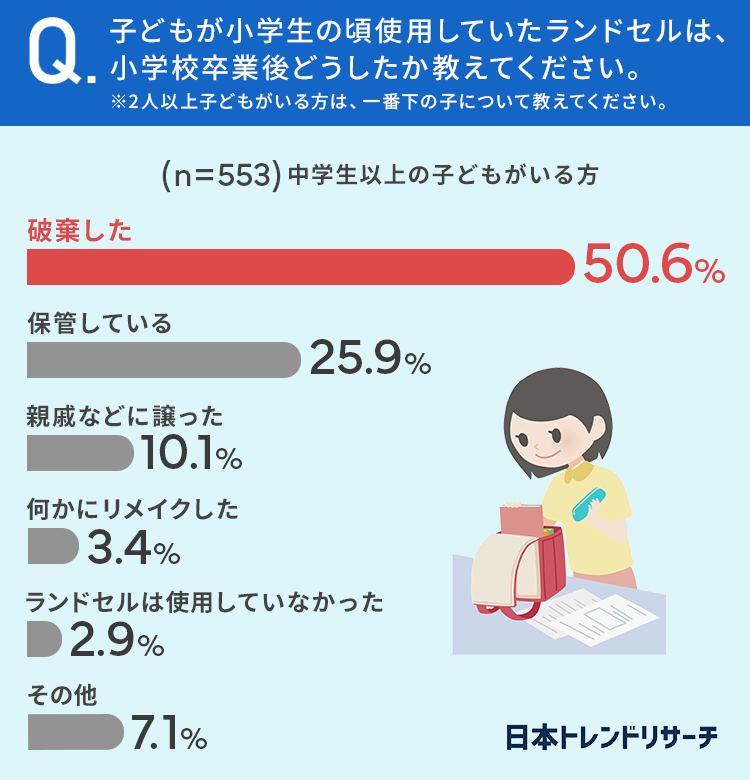 今回は「ランドセルのその後」に関する調査を行い、その結果について紹介しました。
