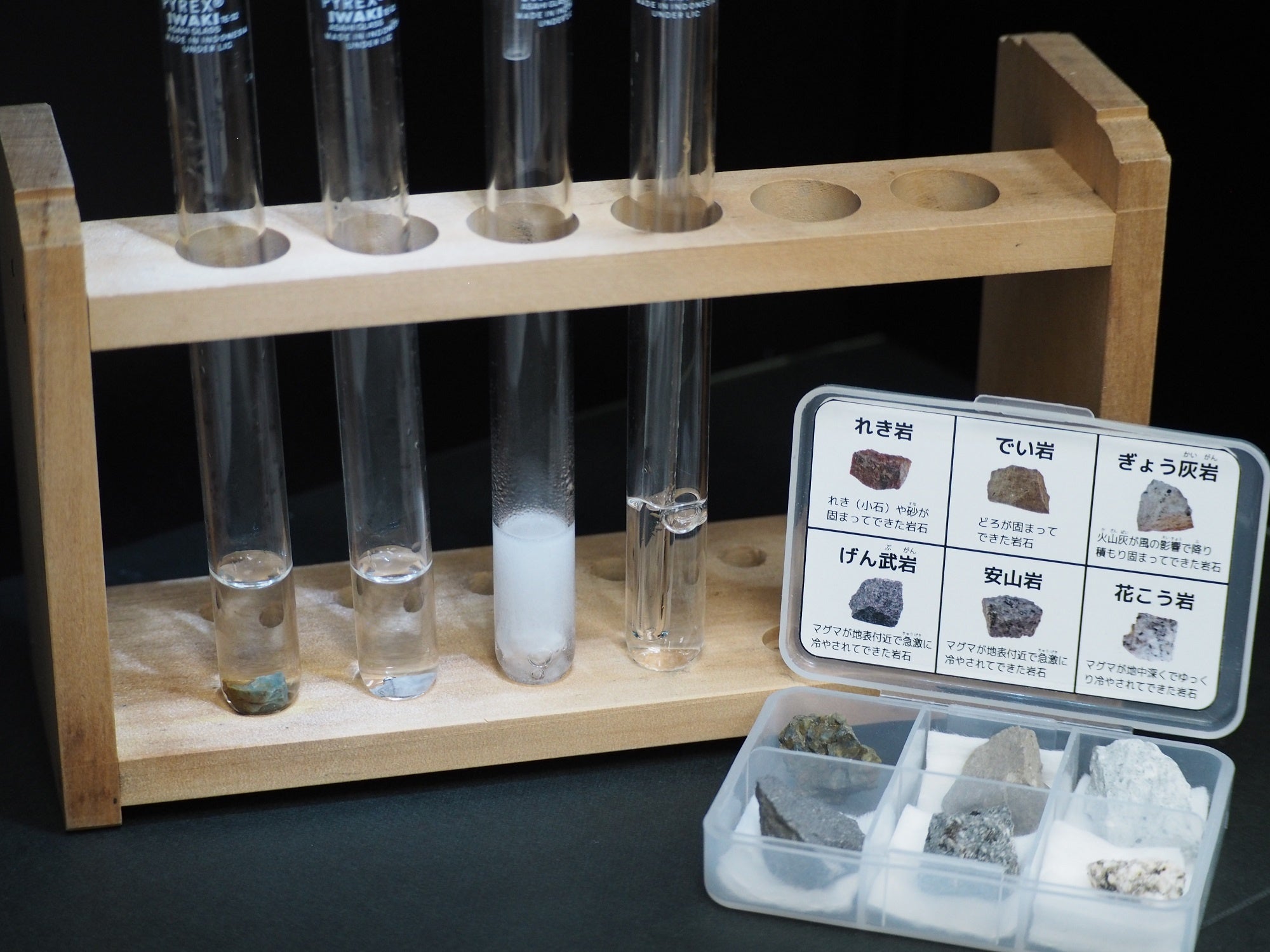 本物の岩石を使って観察・実験し、性質や特徴を理解します。実物に触れることで、テキストで学んだ内容が深まります。