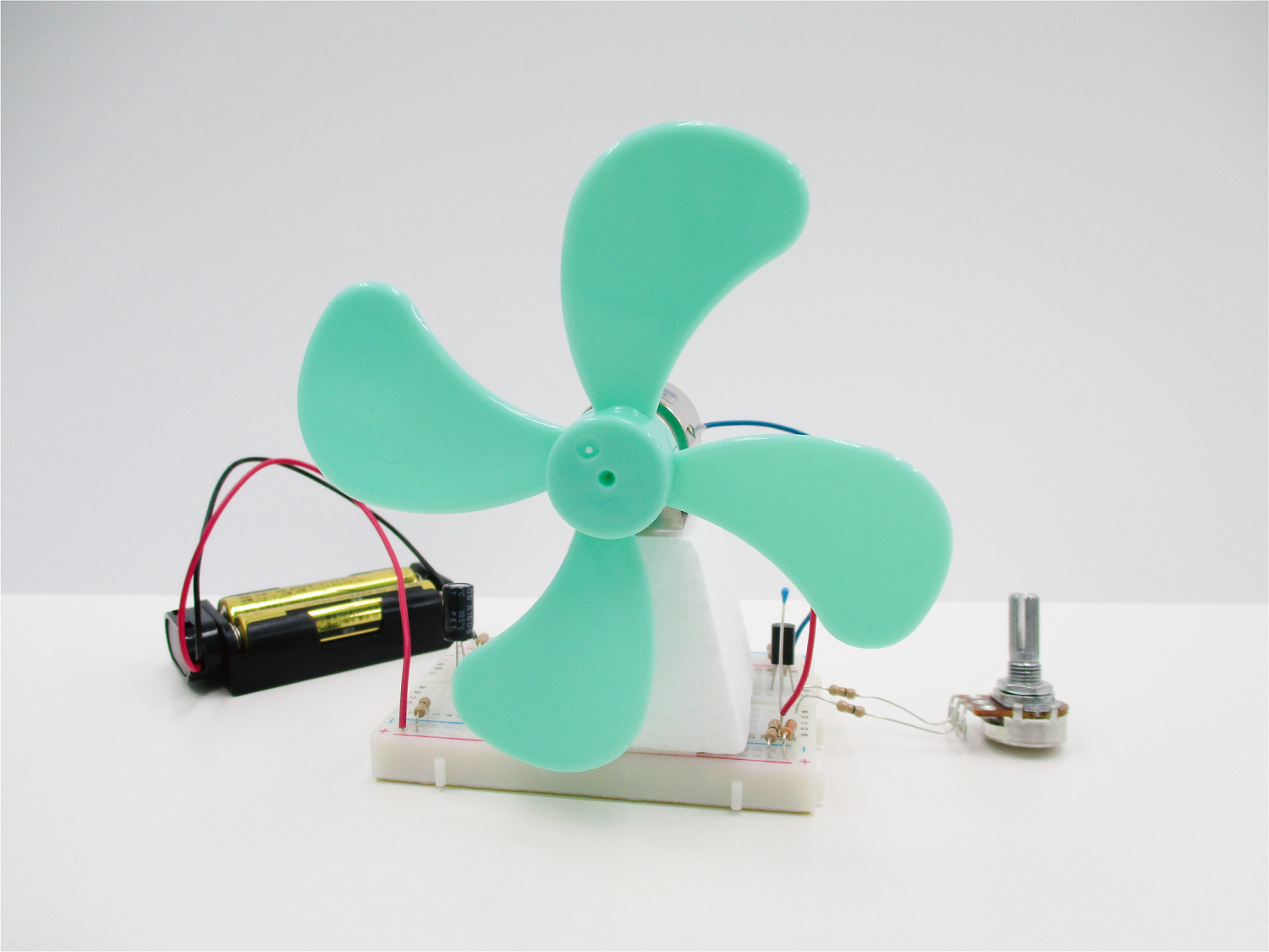 モーターとプロペラを使って扇風機を作ります。「抵抗」をうまく使って風の強さを変えてみましょう!